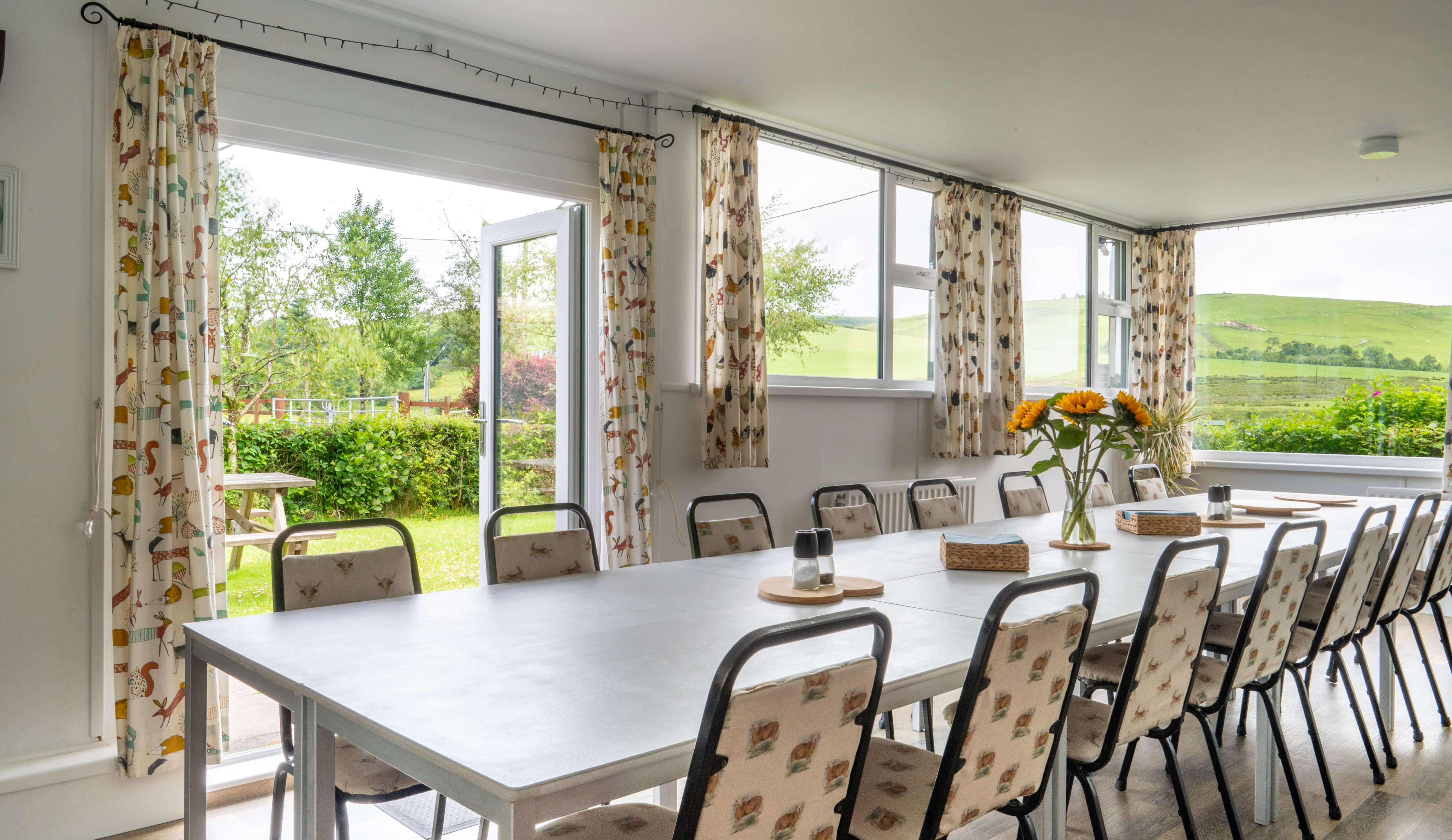 Hafren Forest Hideaway is a unique accommodation, with comfortable rooms and a very homely feel. The lounge offers gorgeous views, and a lovely wood burner for the colder nights. Sarah and Darren are excellent hosts and ensure you have everything you need for a comfortable stay. You are treated to a hearty cooked breakfast, lunch and evening meal so you don’t need to worry about finding somewhere to eat. The dining room seats 14, a great place to sit and share stories!