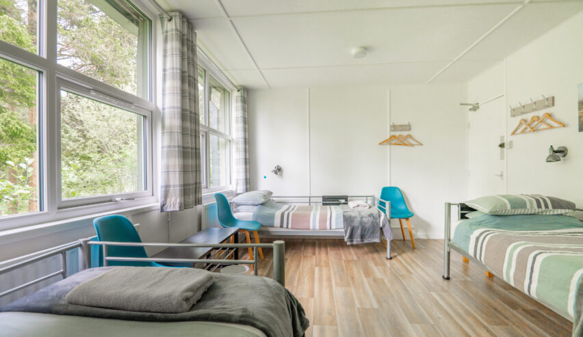 There are 4 bedrooms sleeping up to 14 people; 2 with 2 x single beds, 1 with 2 x single beds plus a bunk bed, and the largest room has 2 x single beds plus 2 x bunk beds. It is so well thought out, each bed has a USB charging point, a touch light, and a box under the bed to neatly store your belongings. The bathrooms are shared as you would expect in group accommodation, and there are 6 electric showers. Each bedroom is allocated a shower/showers and there are 5 toilets, which can be split into male/female.