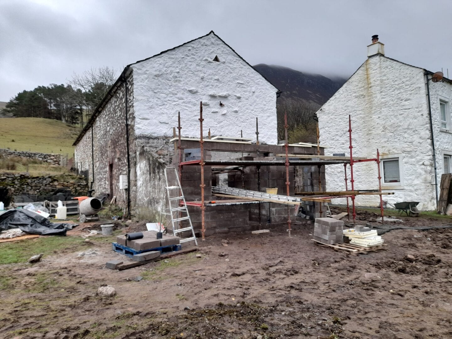 There is nothing like a 12th of April deadline to get you working hard. The Wild Wool Barn has taken its first bookings for single family groups from then so the race is on to have the building work complete. The renovated toilet and shower block will mean that the hostel will be booked on a permanently exclusive use basis and campers and workshop visitors will have their own separate facilities. We are booking up fast for July and August, but there are plenty of dates left in May and June. We promise to have the grass growing again by then.